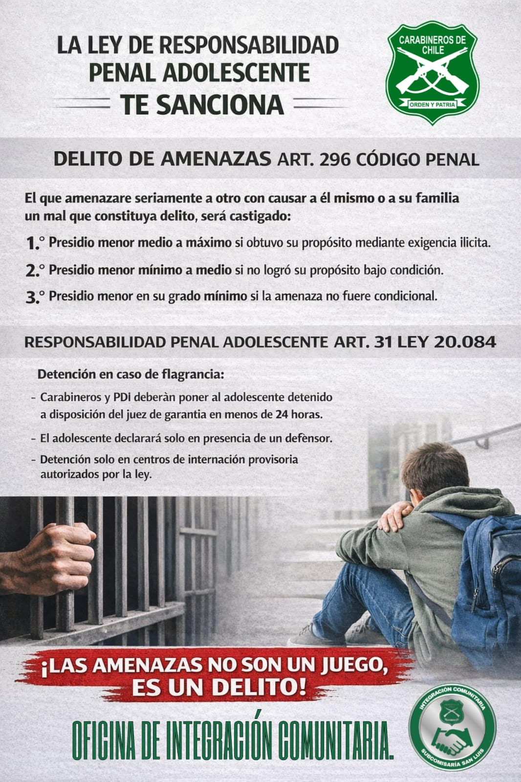 Asimismo, se están coordinando charlas con autoridades competentes, orientadas a la responsabilidad penal adolescente, con el fin de generar conciencia sobre las consecuencias de este tipo de conductas.